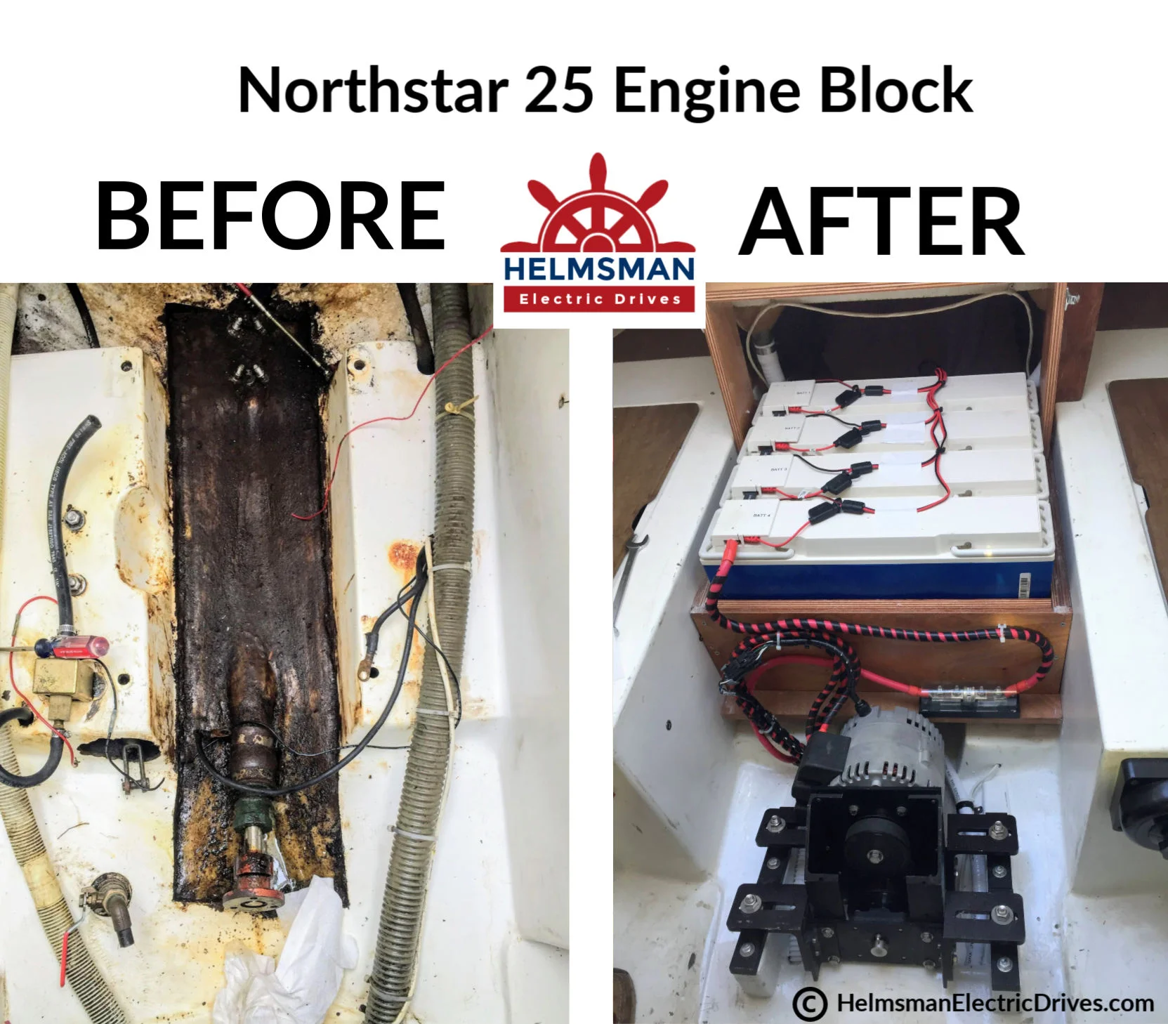 The Atomic 4 inboard motor was in need of a major overhaul and the decision was made to re-power with a clean, green and quiet electric motor. This would eliminate the owners’ docking anxiety as well as the smells, noise and winterizing requirements of the petrol engine.